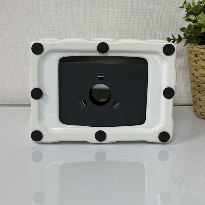 素材には艶のある陶器を使用しており、上品な雰囲気が漂います。さらに、汚れが付きにくく、さっとひと拭きでお手入れできるのも魅力。キッチンや洗面台など、清潔を保ちたい場所でも安心してお使いいただけます。