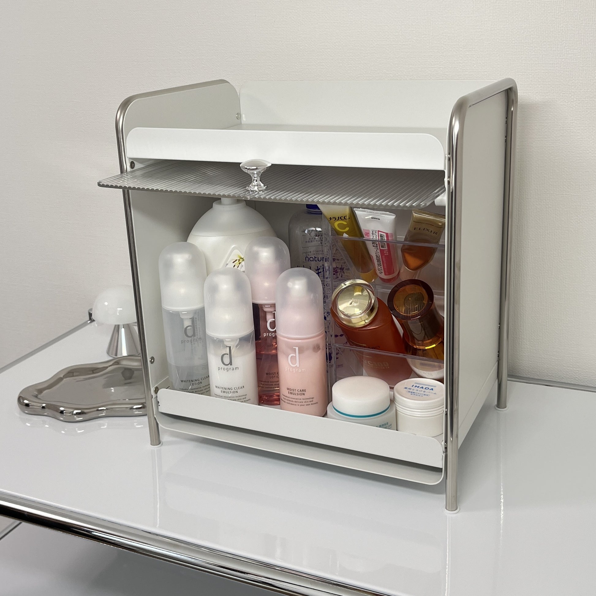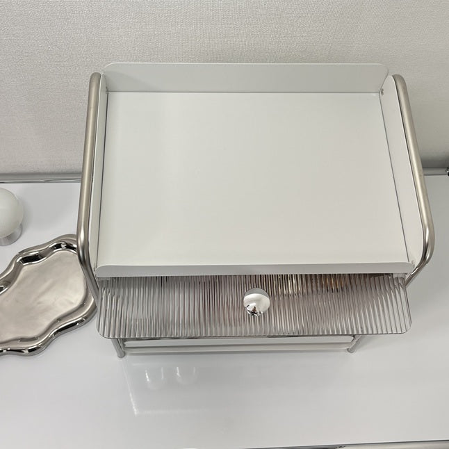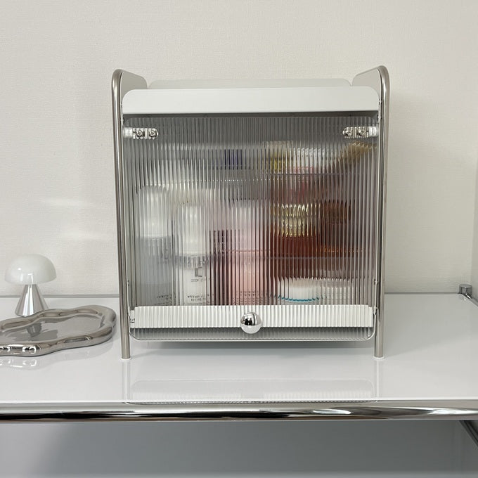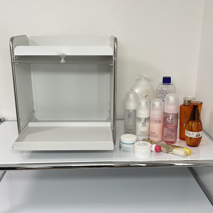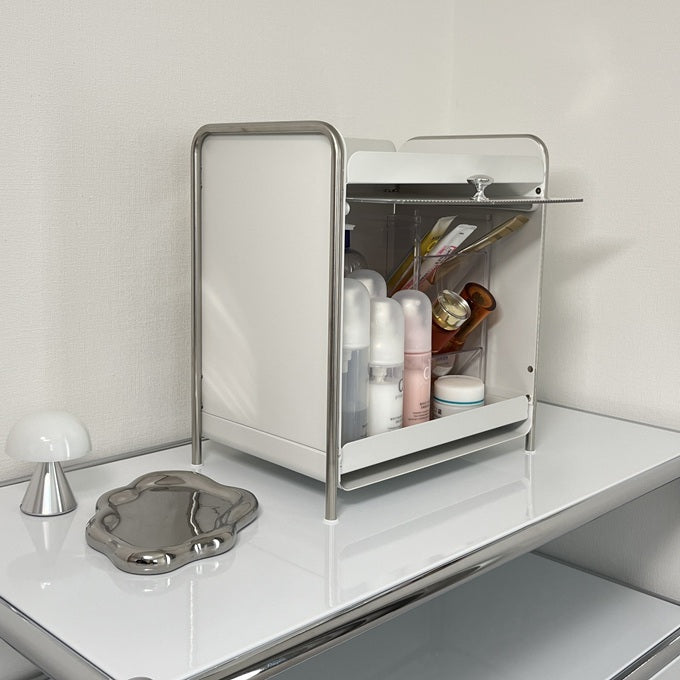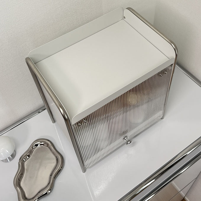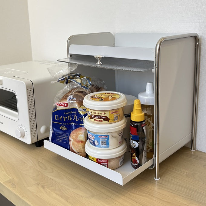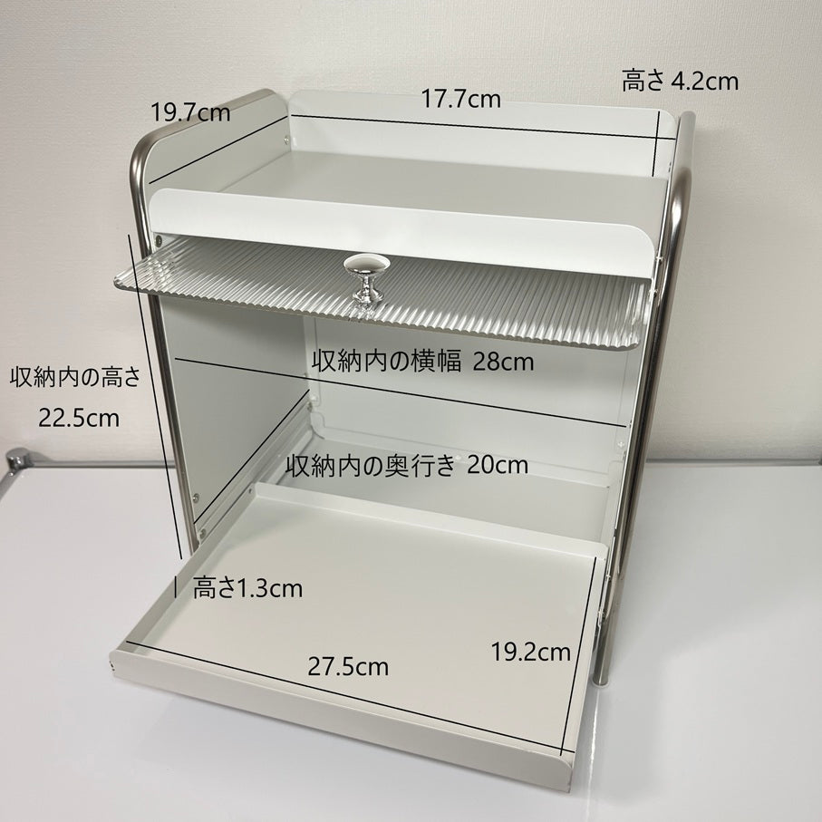 【予約注文:到着目安2週間)】シルバー × ホワイト スライドトレイ収納 STR-0013