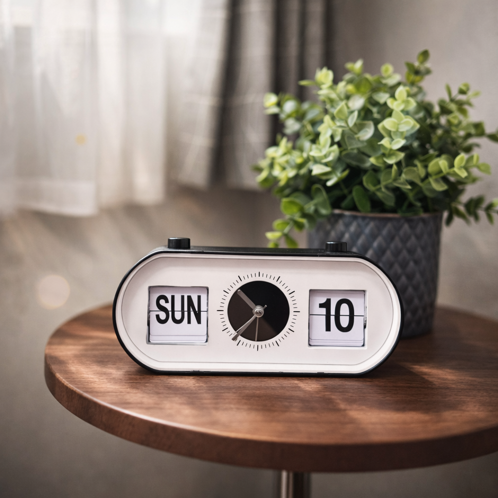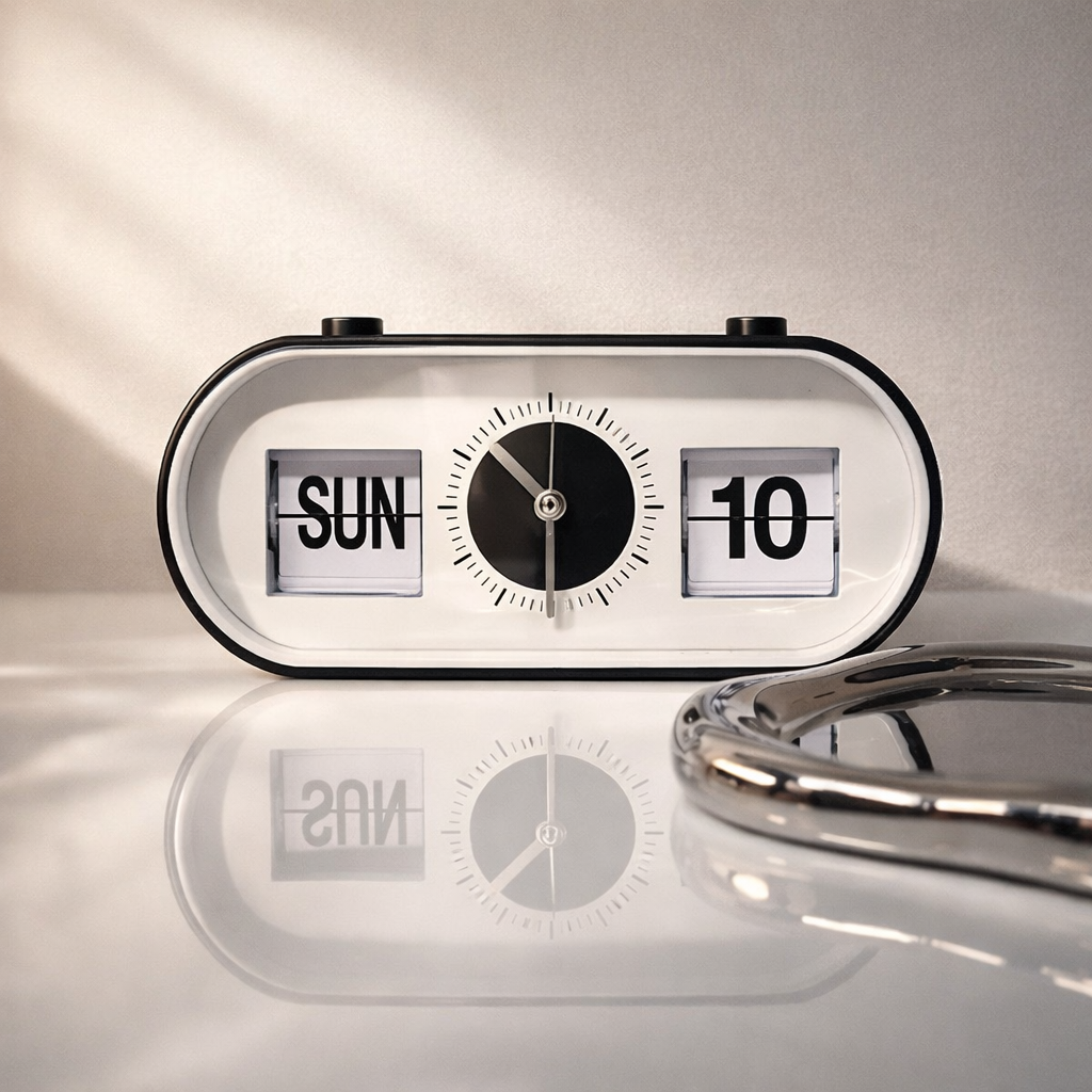 シルバーの針は上品な輝きを放ち、秒針は滑らかに静かに回転します。見ているだけで時間の流れがゆったり感じられ、デスクやベッドサイドに置いておくだけでも雰囲気を高めてくれます。実用性とインテリア性を兼ね備えた一台です。