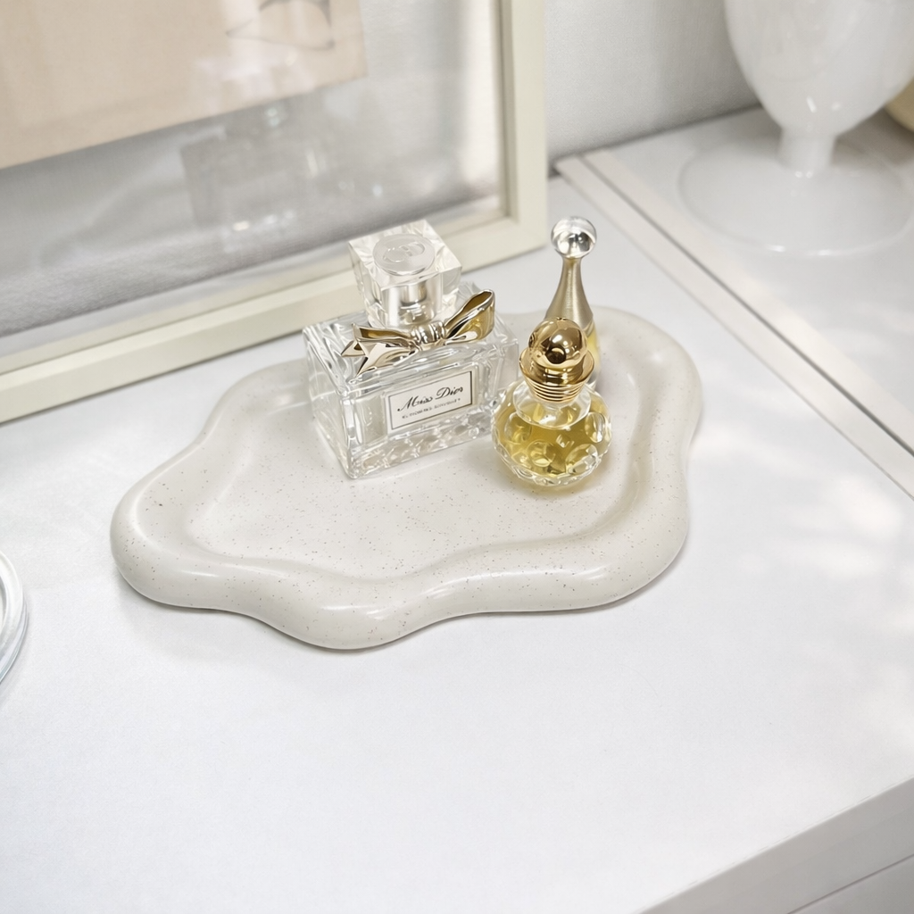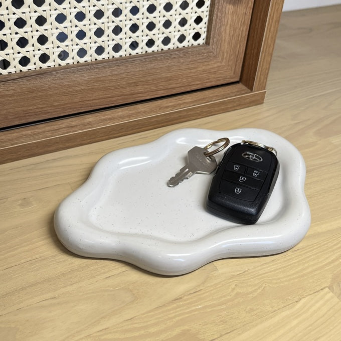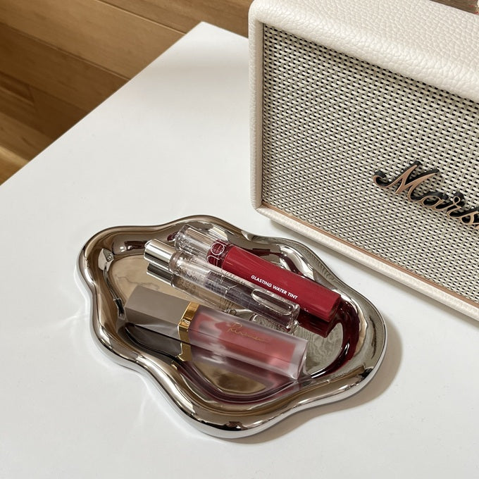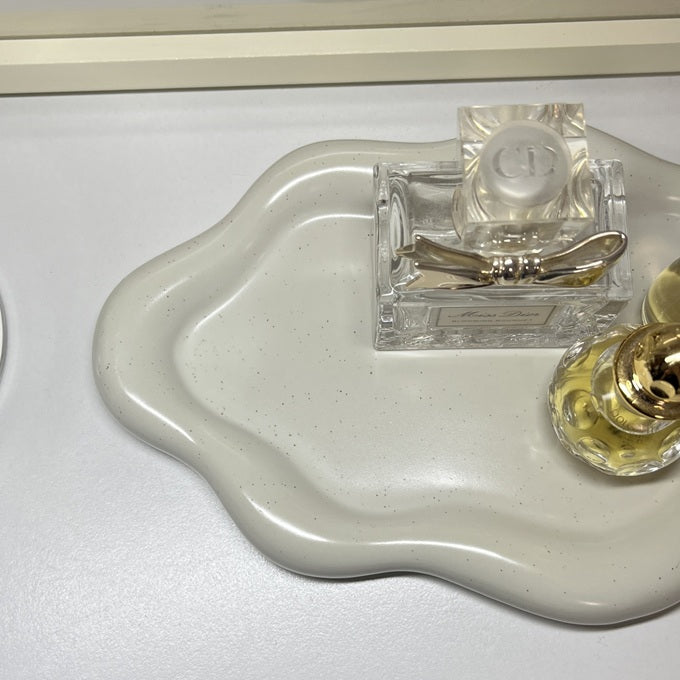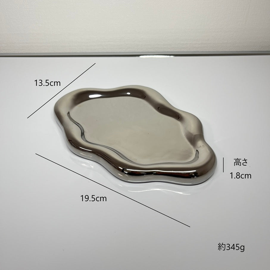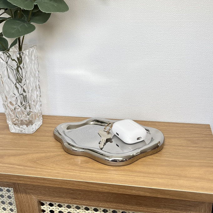 縁がやわらかく、ぷっくりと膨らんだフォルムが特徴のトレー。置くだけで空間に上品なアクセントを添えてくれます。