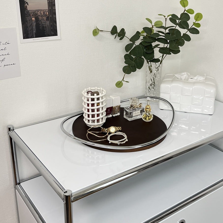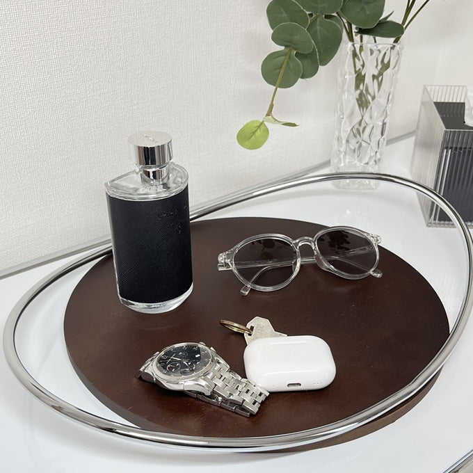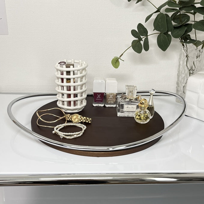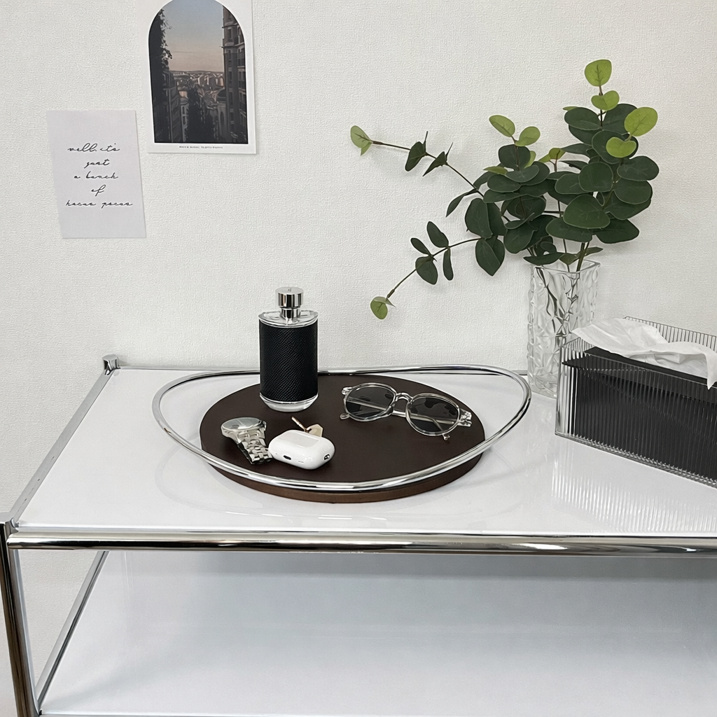 デザイン性の高いトレイなので、香水やアクセサリーなどの細々したアイテムをまとめて置くだけで、まるでホテルのような洗練された空間に。リビングや玄関、寝室など、様々なシーンで活躍します。