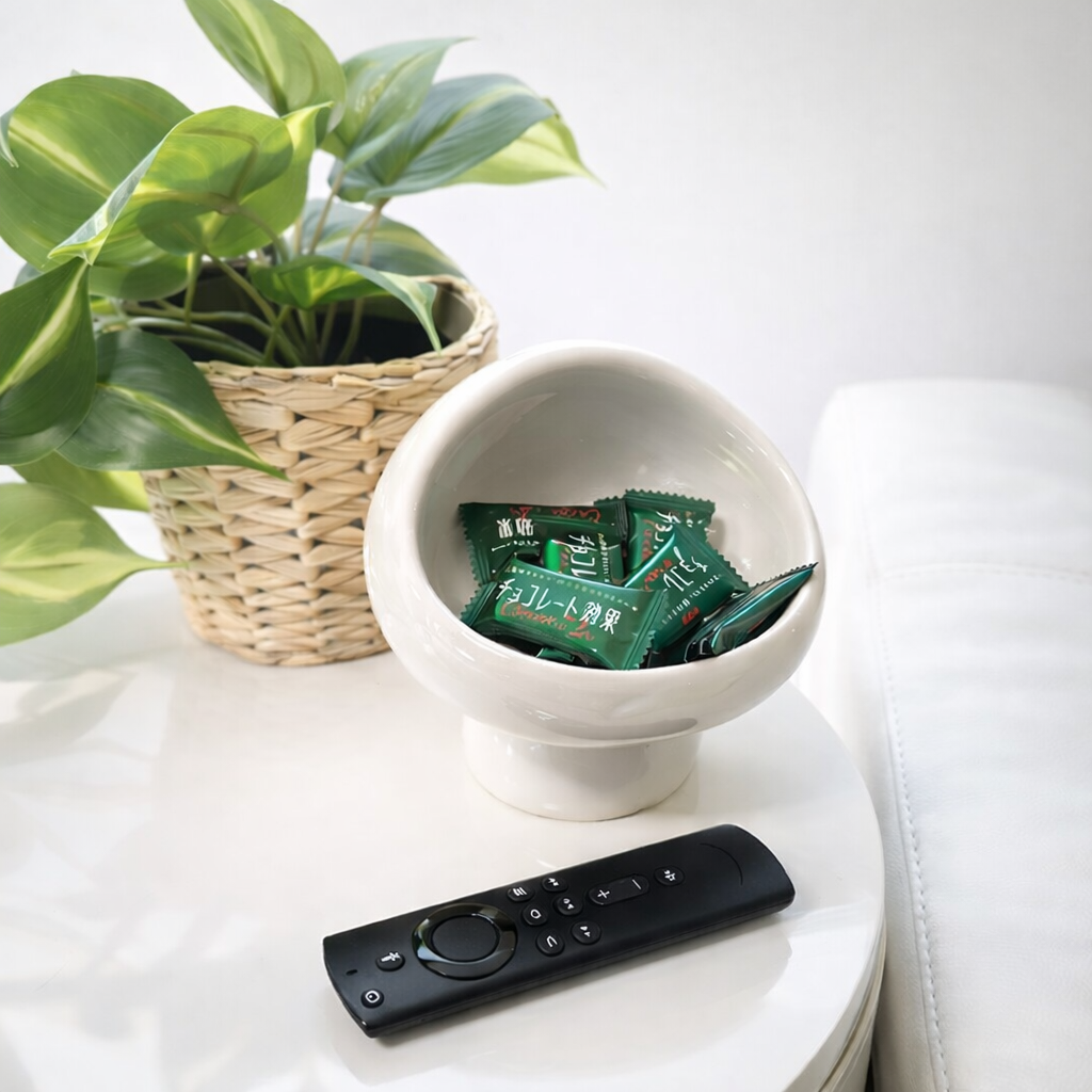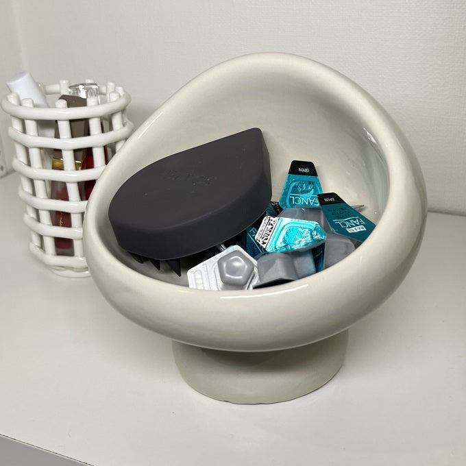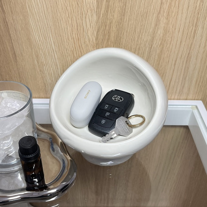 玄関では鍵や小銭入れとして、リビングではキャンディやチョコなどのお菓子入れとして、バスルームでは洗顔パウダーや小さなスキンケア用品の収納に。場所を選ばず、暮らしに溶け込む使いやすさが魅力です。