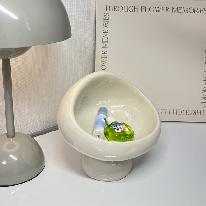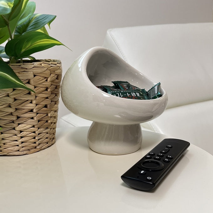 後ろから見ると、まるで本物のきのこのようなユニークかつかわいいフォルムの小物入れ。インテリアとしても映えるデザインで、お部屋のアクセントにもぴったり。